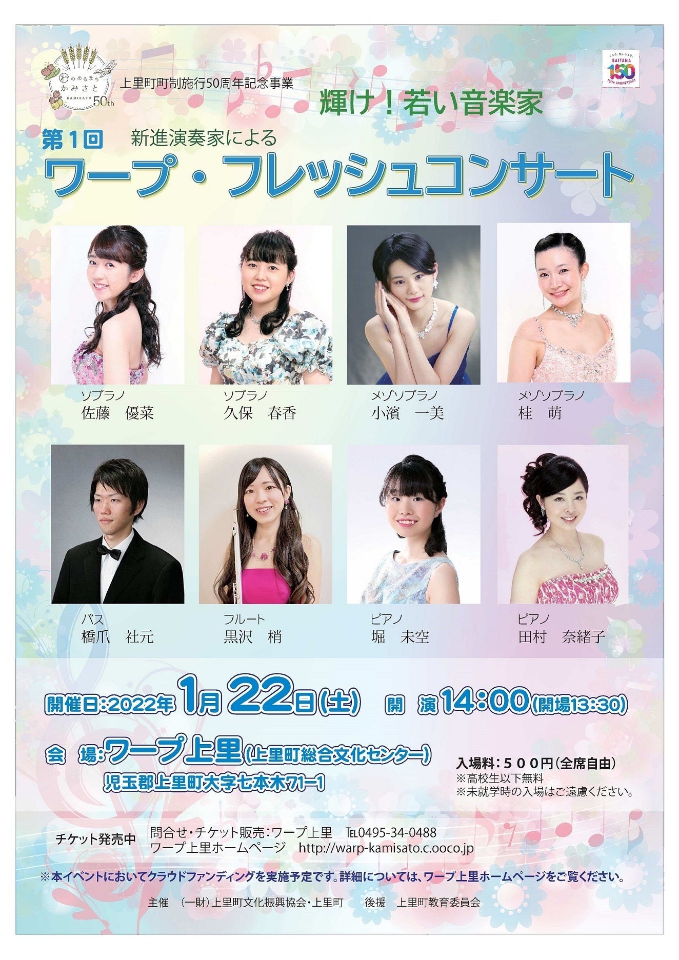 数あるプロジェクトの中から本ページをご覧いただきまして、誠にありがとうございます。一般財団法人上里町文化振興協会は、埼玉県の埼北にある上里町の文化施設「上里町総合文化センター(ワープ上里)」を拠点に様々な文化振興事業を行い、地域の文化向上に努めています。今年度はじめての取組として新型コロナウイルス感染症の影響を受けて様々な活動が制限されてしまった若手演奏家や演奏家を目指す方へのさらなる支援と地域の方々に演奏を通して感動を与えることを目的に【輝け若い音楽家!第1回ワープ・フレッシュコンサート】新進音楽家応援プロジェクトを立ち上げました。