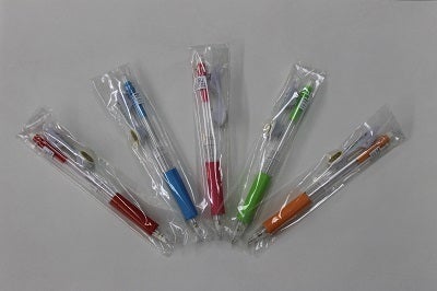 (赤・青・緑・橙・桃 の5色。ボールペンの赤のみ赤インクとなります。)