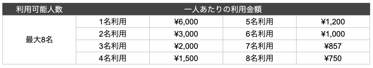 男女8名までご利用いただけますので、人数が多いほどお得になります。
