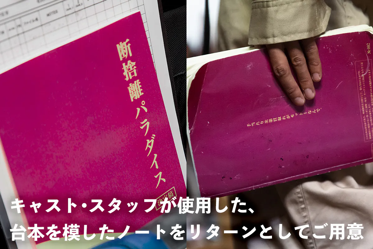 映画の現場で実際に使われた台本を模したノートを1冊リターンさせていただくプランです。