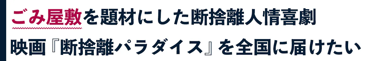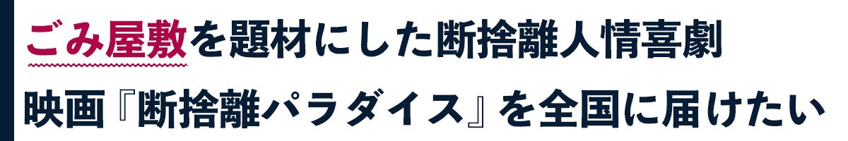 全編福岡で撮影を行い、各種メディアに取り上げられ盛り上がりを見せている映画『断捨離パラダイス』。撮影地の福岡だけでなく、全国にこの映画を届けるたいという思いからプロジェクトを立ち上げました。