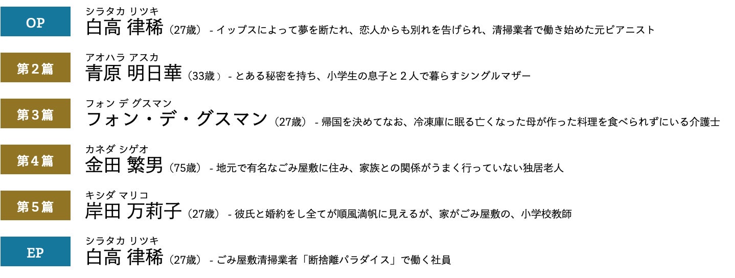 6篇のエピソードからなる新機軸の断捨離人情喜劇。