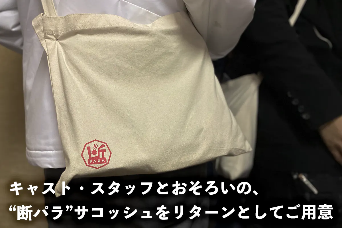 映画の現場で実際にみんなが使用したのとおそろいのサコッシュを1つリターンさせていただくプランです。