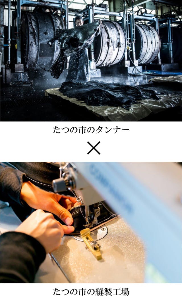 そして、たつの市を含むこの兵庫県西播磨地区は日本全国に流通されている革素材のシェア70~80%を誇る一大産地です。にも関わらず、その認知度はまだまだ低く、ほとんどの方にその事実を伝え切れていません。このプロジェクトを通して、1人でも多くの方にたつのレザーを知って頂きたいです。