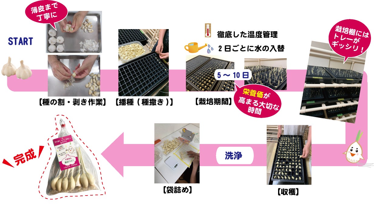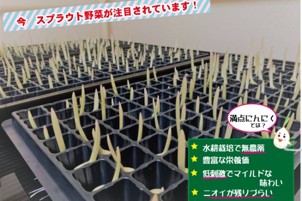 大阪市東淀川区内で、水耕栽培でスプラウトにんにく【商品名:満点にんにく】を栽培している