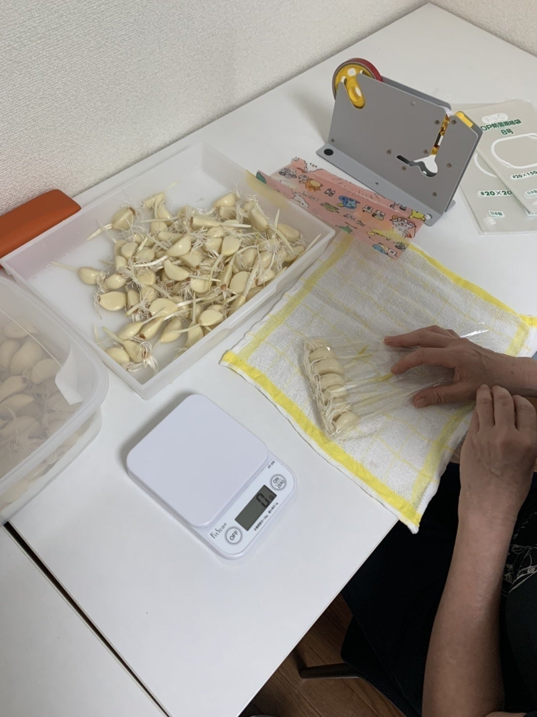 その中の、空き家となっている室内を利用して、水耕栽培でスプラウトにんにくを栽培しています。