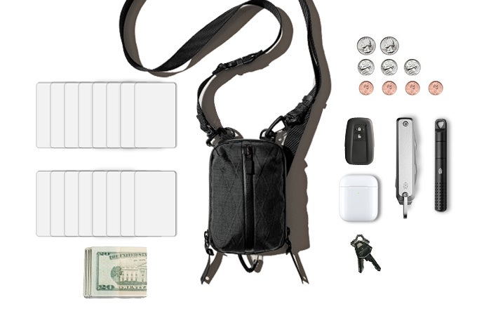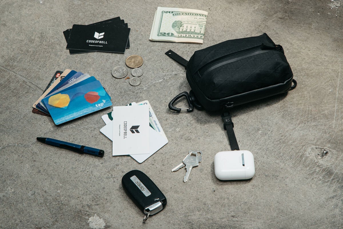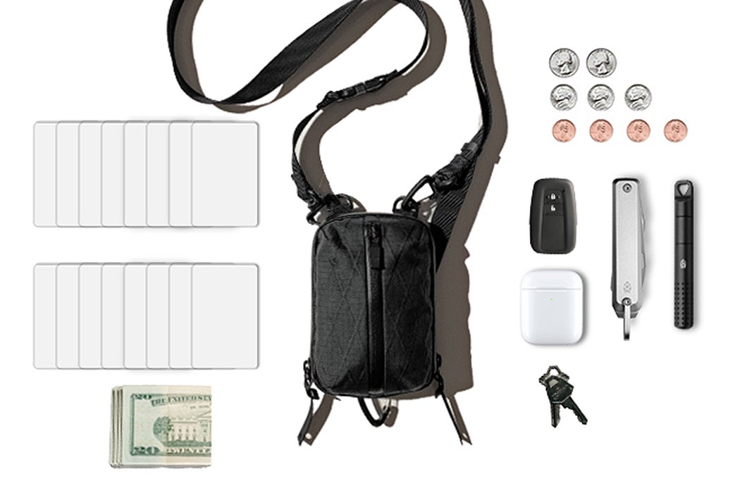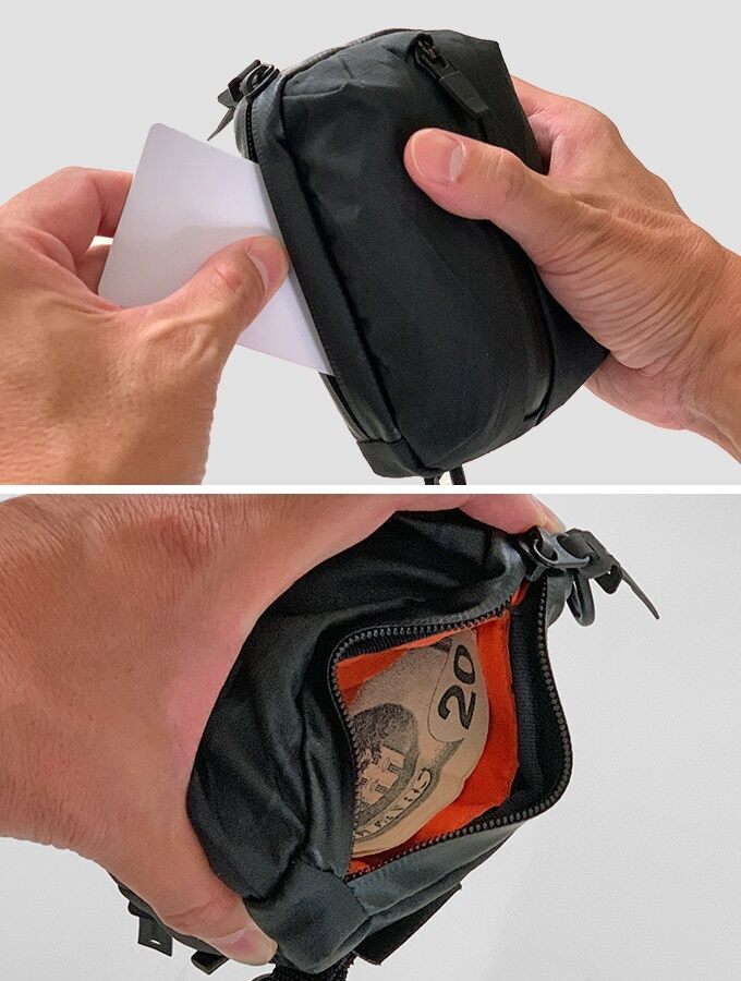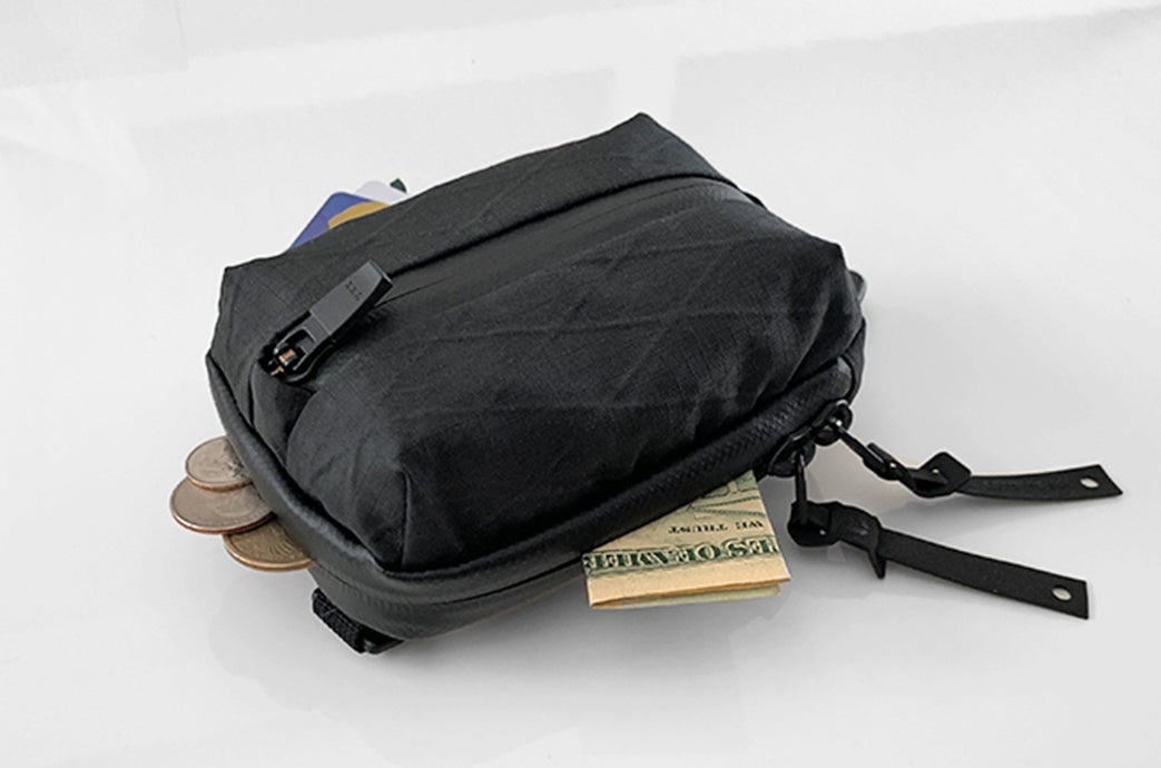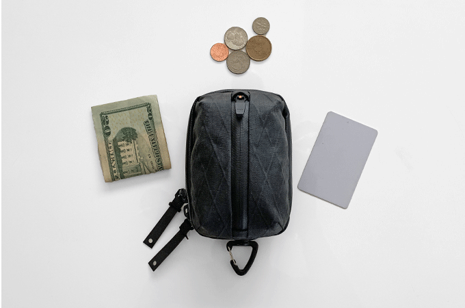 財布のように手に収まる絶妙なサイズ感。しかし、それに惑わされてはいけません。ユニークなデザインで、たっぷりと収納でき、お金やEDCアイテム(EVERY DAY CARRY = 毎日持ち歩くもの)をまとめて整理することができます。あなたの今お使いの財布でこれだけのものを持ち運べますか?