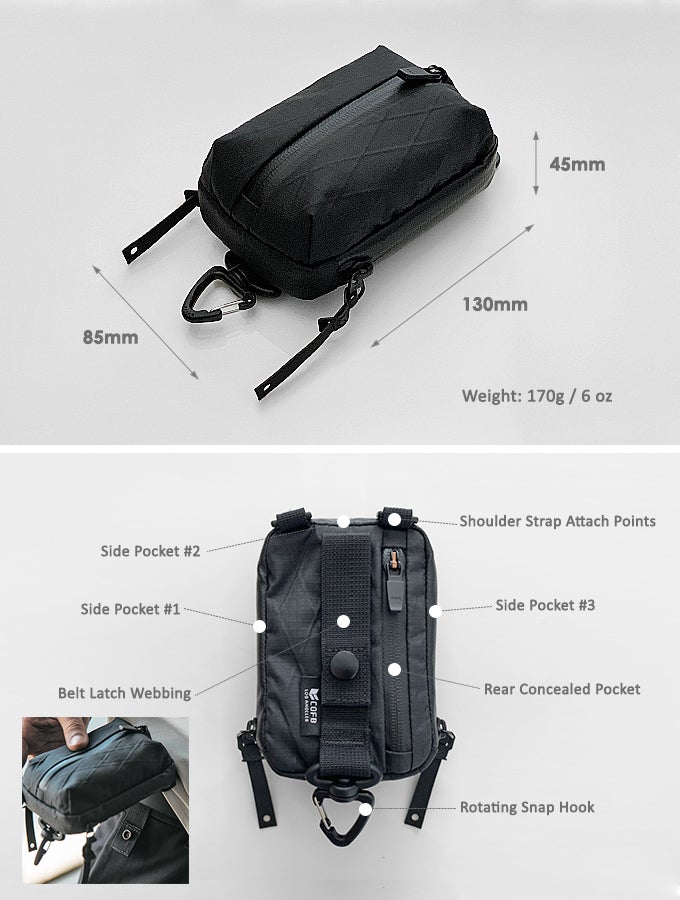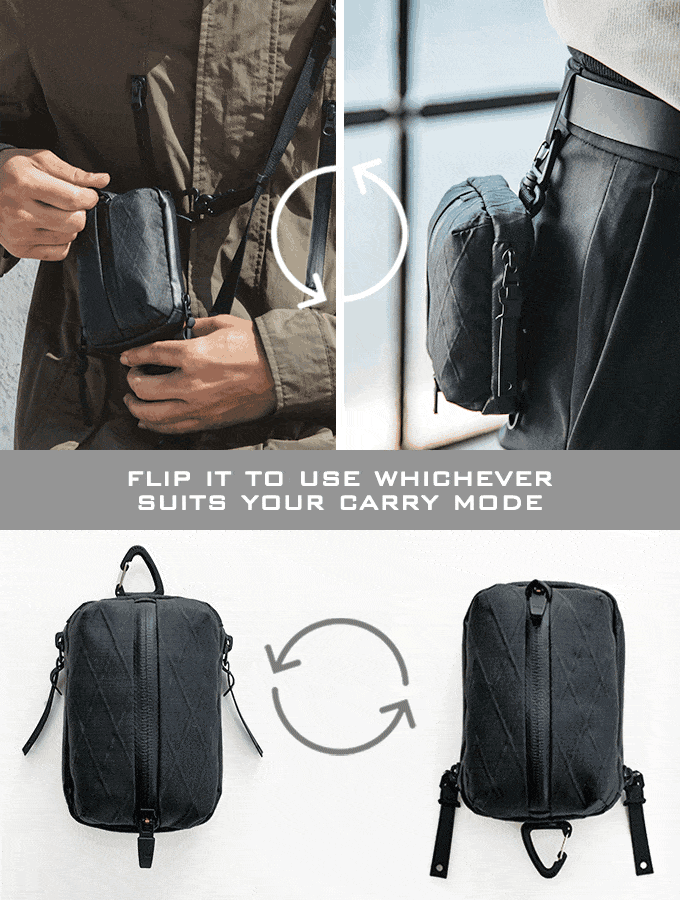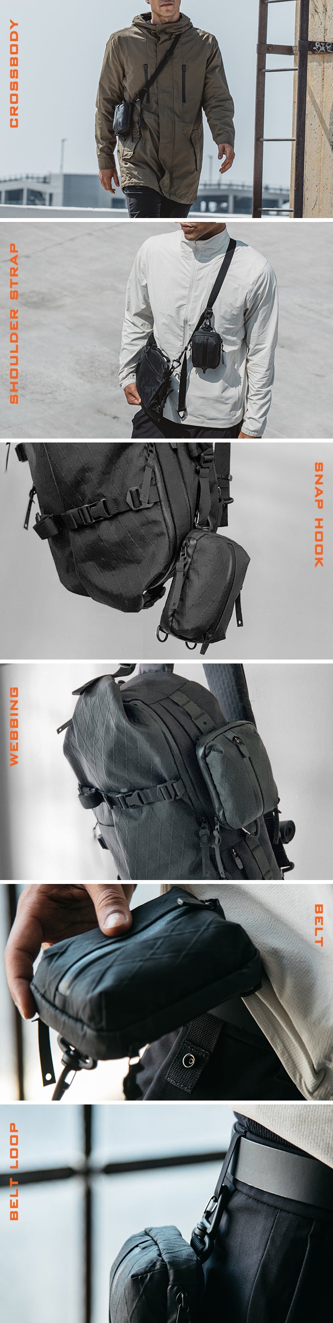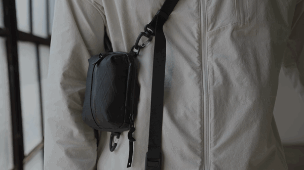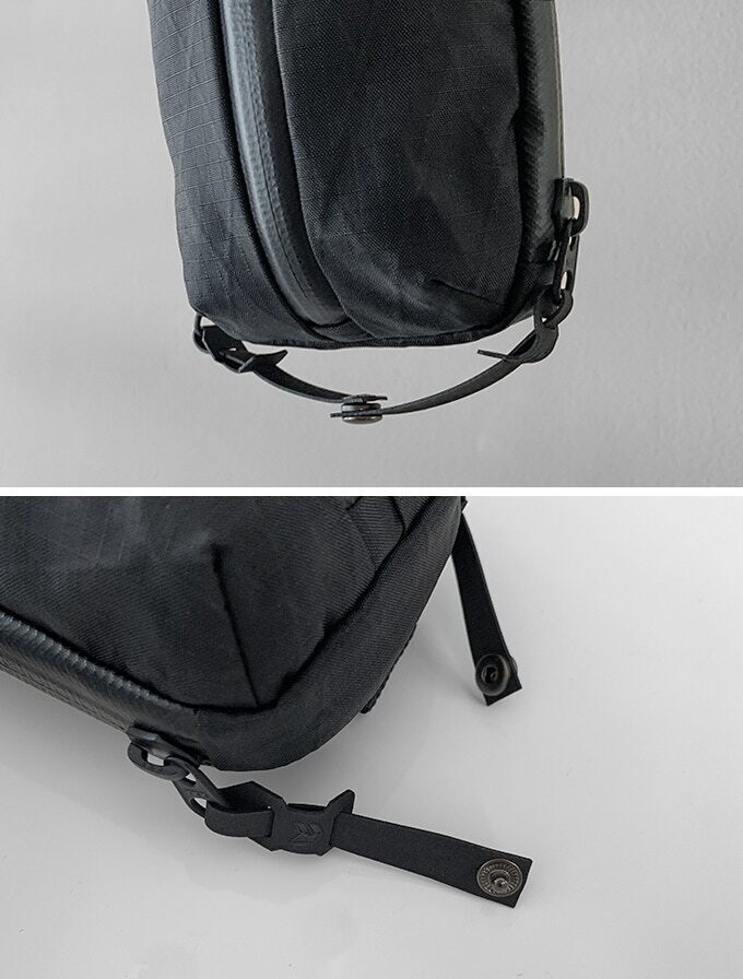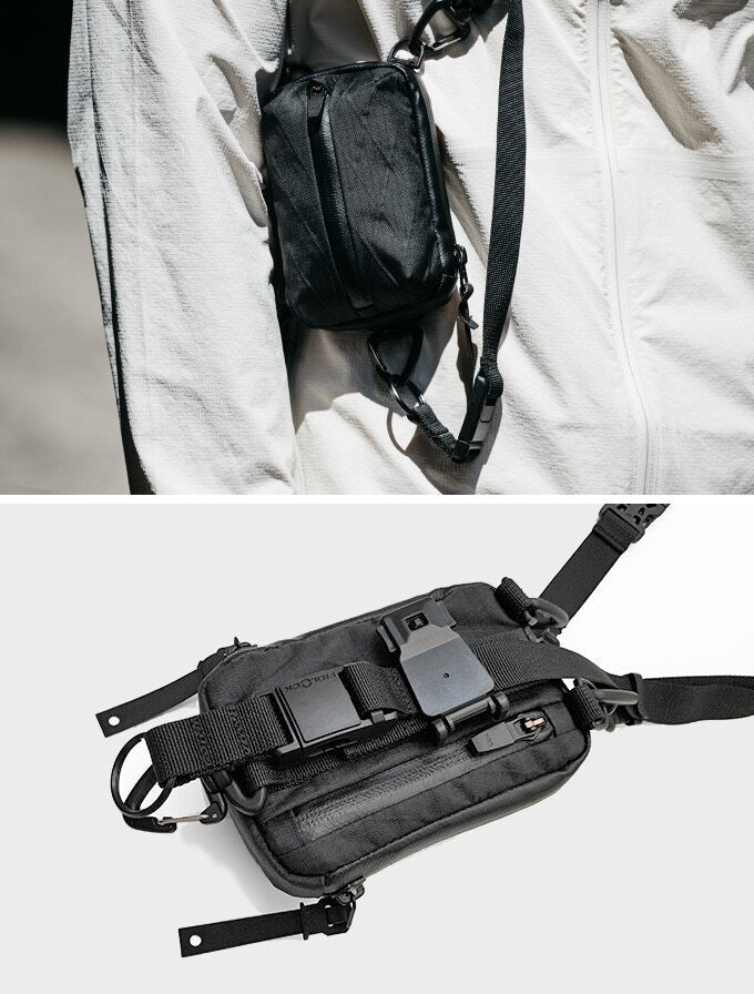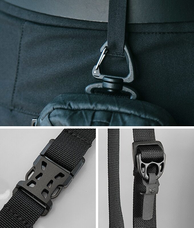ANNEX 360は、主にスリングとして使用することができます。また、ショルダーストラップを外して上下を逆にするだけでポーチとして使用でき、ベルトに直接取り付けたり、ベルトループに引っ掛けたり、お好みの場所に取り付けることができます。