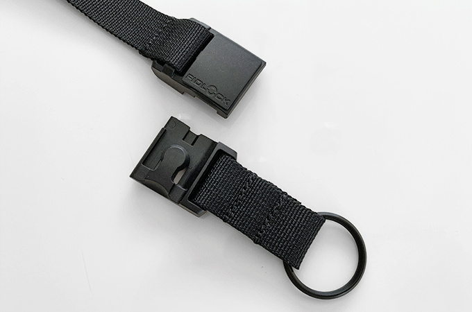 ショルダーストラップの一端には、マグネット式で着脱できるキーホルダーが付いています。使用しない場合は、ANNEX 360の底面にあるスナップフックに取り付けることができます。