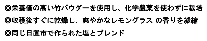 このレモングラス塩を通して皆様が少しでも幸せな気持ちになれるように尽力して参りたいと考えております。