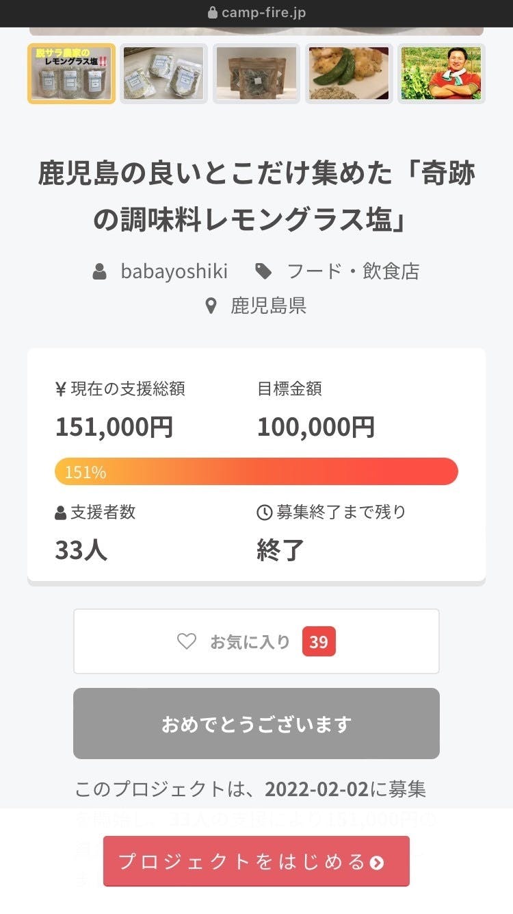 初めてのクラウドファンディング挑戦に四苦八苦して、途中何度も諦めようと思いましたが、ずっと応援してくれた方々や支援して頂いた方々のおかげでプロジェクト達成で終了する事が出来ました。
