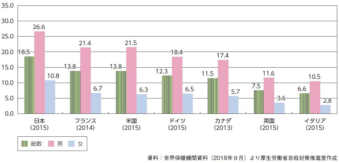 日本は主要7か国の中でもTOPクラスの自殺者増加傾向(20歳代や30歳代に
