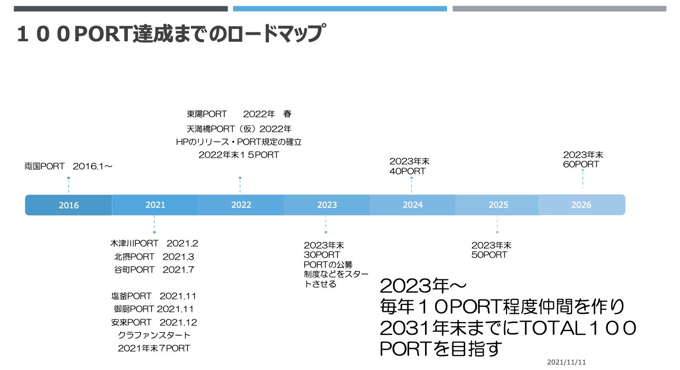 2023年末~2031年 まで毎年 PORT仲間を増やし最終的に100PORTの仲間を作る