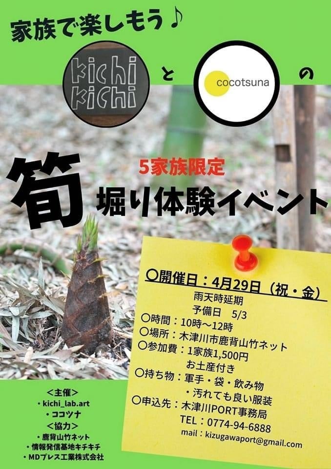 ラスト2日! 今日は木津川PORTさんのいべのお知らせをします!今週末もイベントがありますが、実は月末もイベントがあります^_^木津川PORTがある場所は山城というエリアです。山城の特産品としてブランド筍、山城筍が有名で、木津川の商工会議所のキャラクターにもなっていますそんな筍の産地で開催される、筍掘りイベント春だけの特別なイベントです。また4月2日春マルシェでは山城筍を使って、美味しい若竹煮も販売される予定ですのでお楽しみに!実は木津川PORTではココツナというプロジェクトを立ち上げ4月から新たなクラファンにも挑戦予定なのです。ココツナは、発達障がいのお子さんを持つお母さんやお父さんを支援する為のプロジェクトとして生まれました。地域に開かれた多様性のある共生型のPORTになるべく日夜奮闘しているスタッフの森川さんがスタートする次のクラファンも是非ご支援いただけると嬉しいです^_^https://camp-fire.jp/projects/556745/preview?token=3ss56ch0