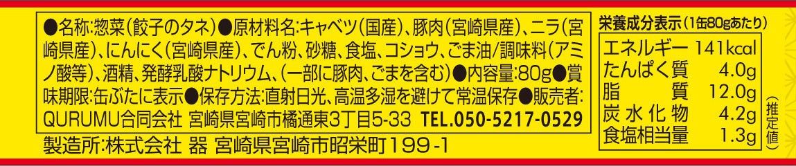 「宮崎餃子のタネ缶」のタネは、宮崎を代表する人気とんこつラーメン店「屋台骨」の餃子のタネを使用しています。