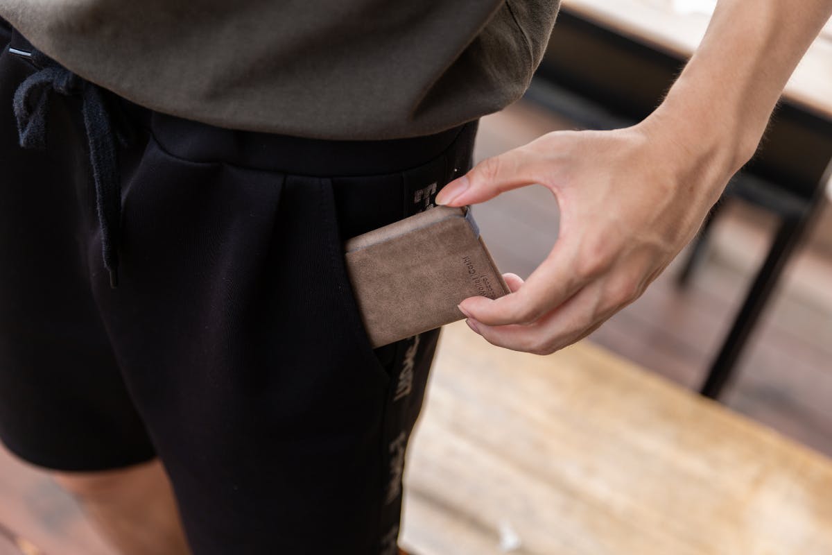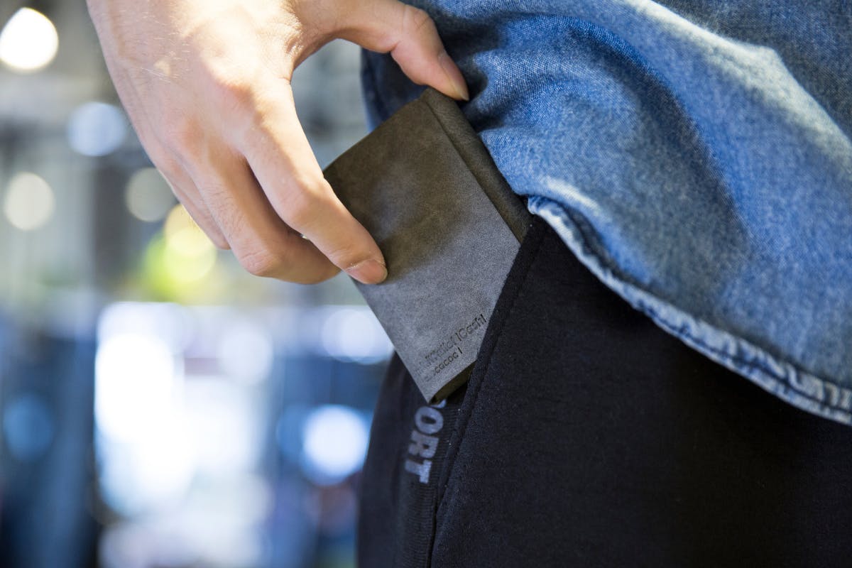 後ろポケットに入れてもはみ出さないので長財布より安心です。