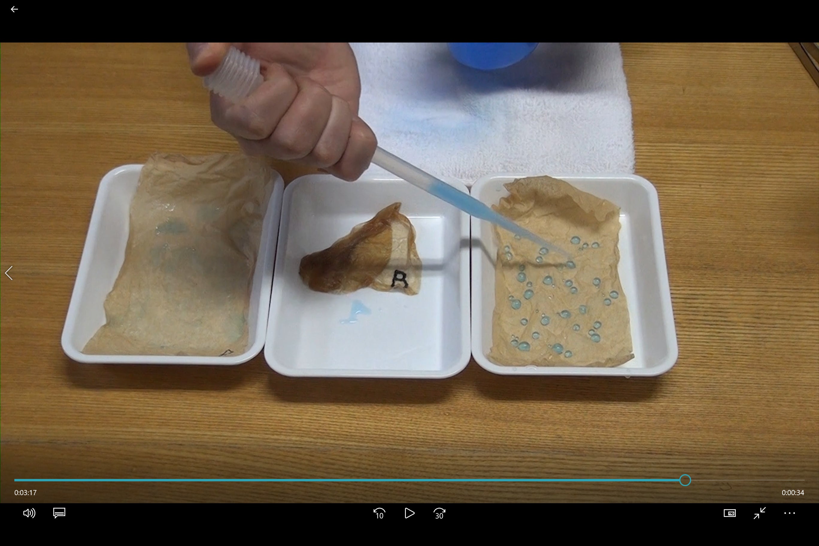 すると、先ほど水を弾いていたAは水を染み込むようになり、Cだけが引き続き水を弾いています。