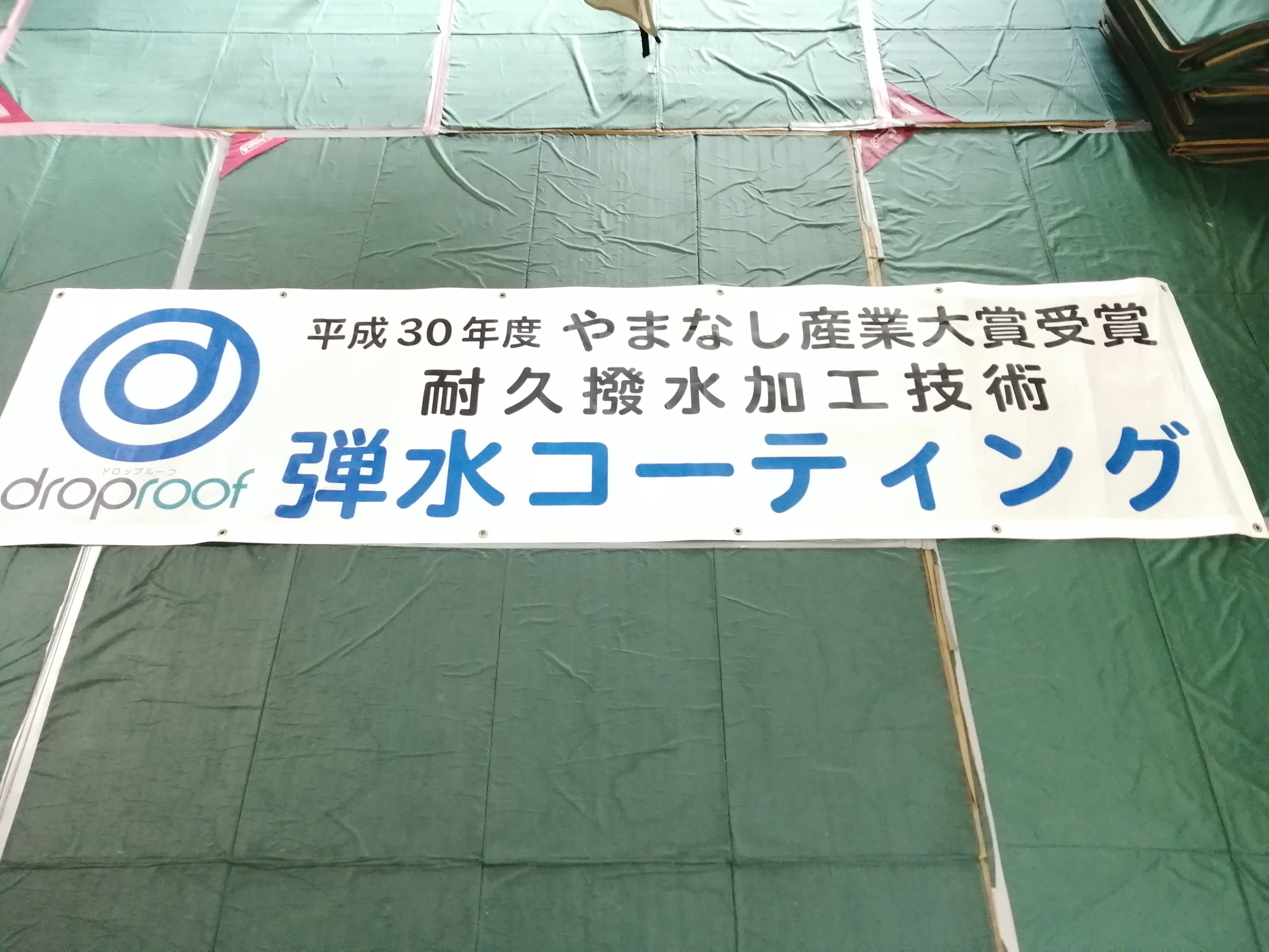 こんにちは。そらのした室野と申します。世界に誇るアウトドアメンテナンスカンパニーを目指して日々活動中です。今回クラウドファンディングで紹介しているリペア技術以外にも、アウトドアで必要な耐久撥水技術やクリーニング技術も磨いております。先日、私どもの工場で掲げている横断幕が汚れているのできれいにしようということになりました。こちらはドロップルーフサービスにて行っている耐久撥水技術「弾水コーティング」でやまなし産業大賞を受賞した際に作成した思い出深い横断幕です。遠くから見ると汚れているように見えないのですが、近くによってみてみると結構汚れていました。特に裏がカビてます。これはいけないということで私たちのクリーニング技術の見せどころです。いつもはテント素材でカビ取りをしていますが、今回はターポリン素材です。繊維素材であれば大抵のものはカビを落とせます。結果このようになりました。裏もこのようにこんな形できれいにすることができました。クリーニング技術&カビ取りもメンテナンスとして大切な位置づけですので妥協なく取り組んでおります。テントクリーニングサービスbyそらのした