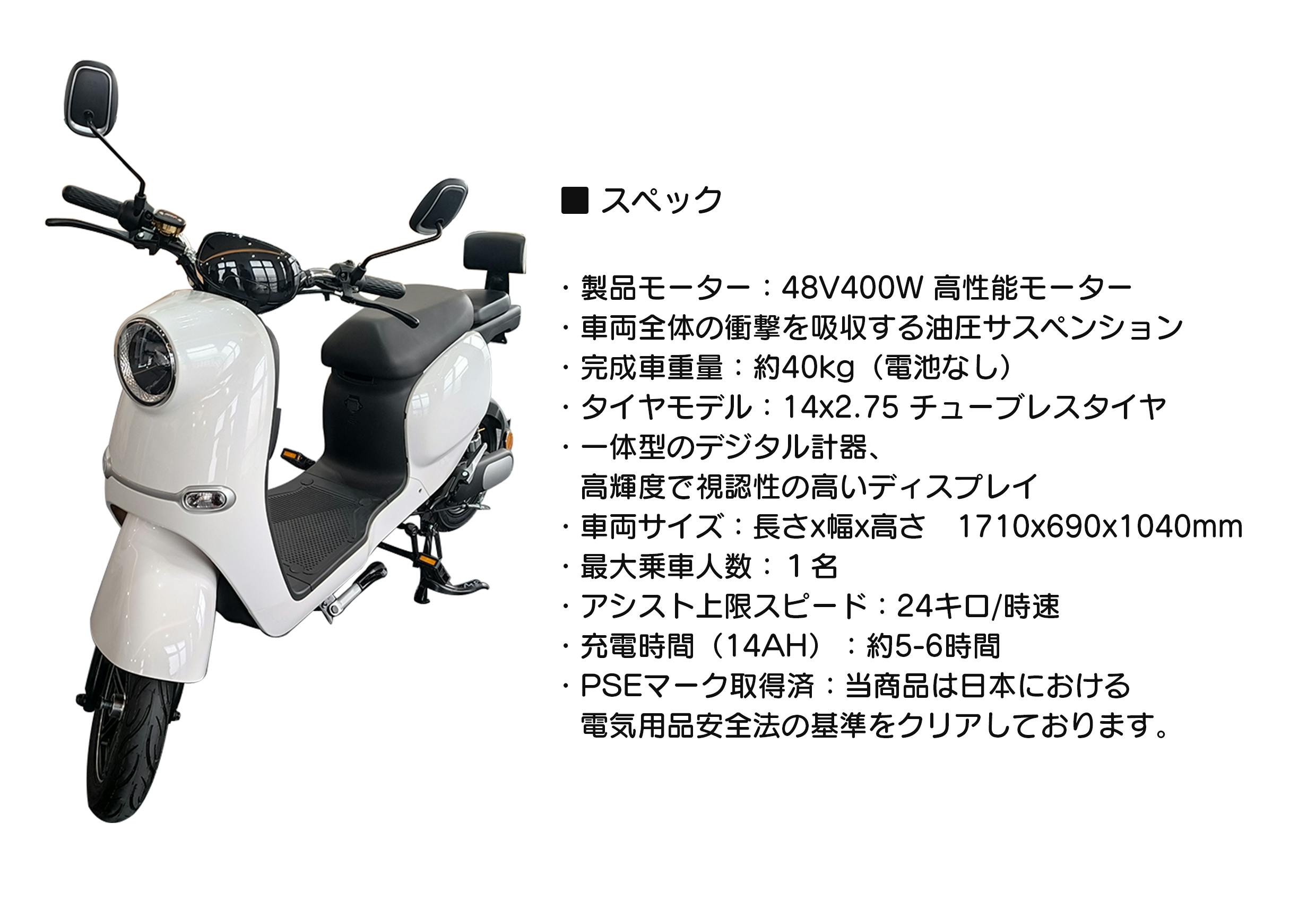 独自に日本向けにモーターなどのセッティングを作り込んでいる。このことが、安価な電動バイクでも「ちゃんとした原付」レベルの乗り心地になってます。