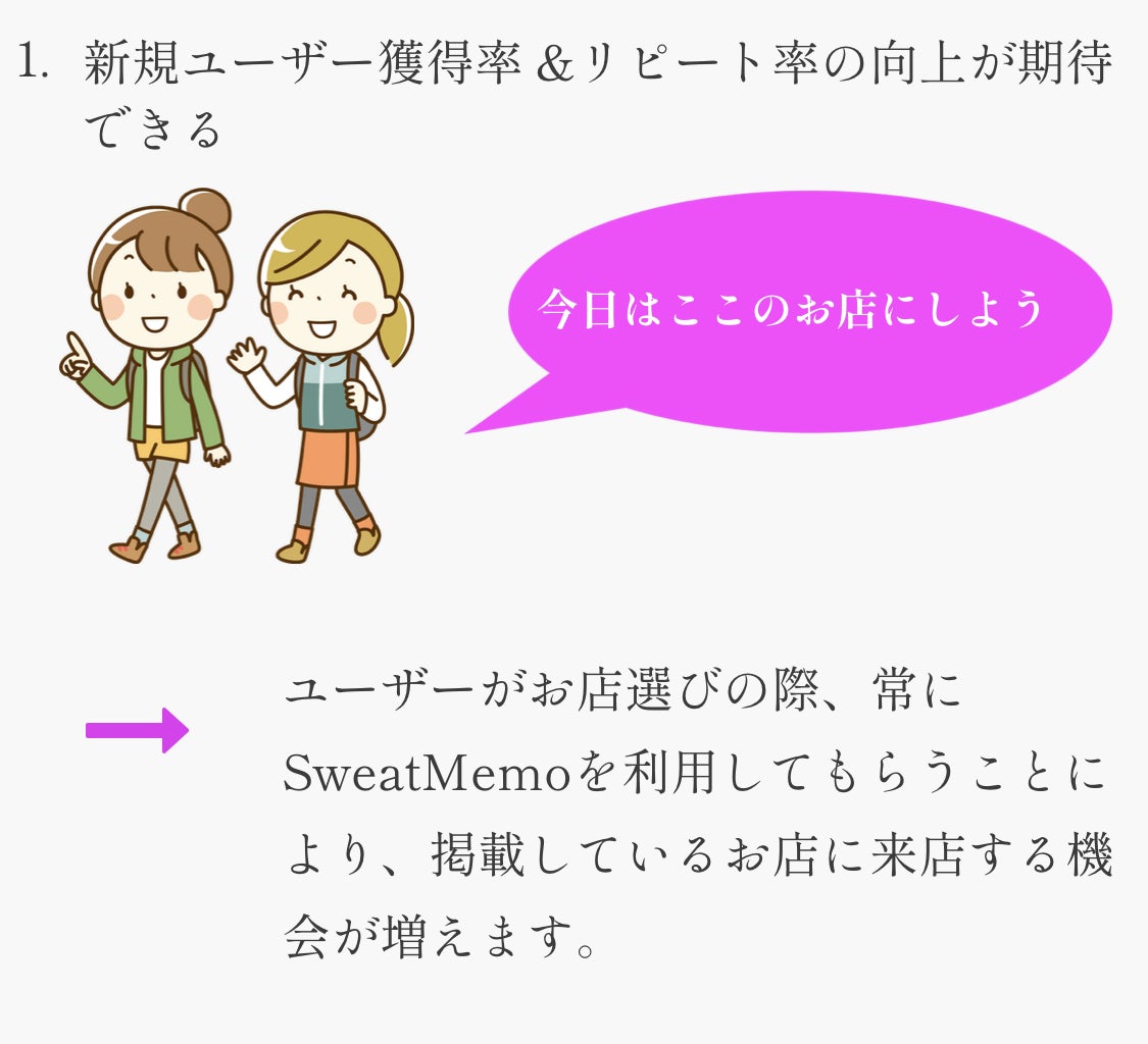 ユーザーのみなさまがSweatMemoを利用することによって、他のグルメサイトにはないメリットがあります。