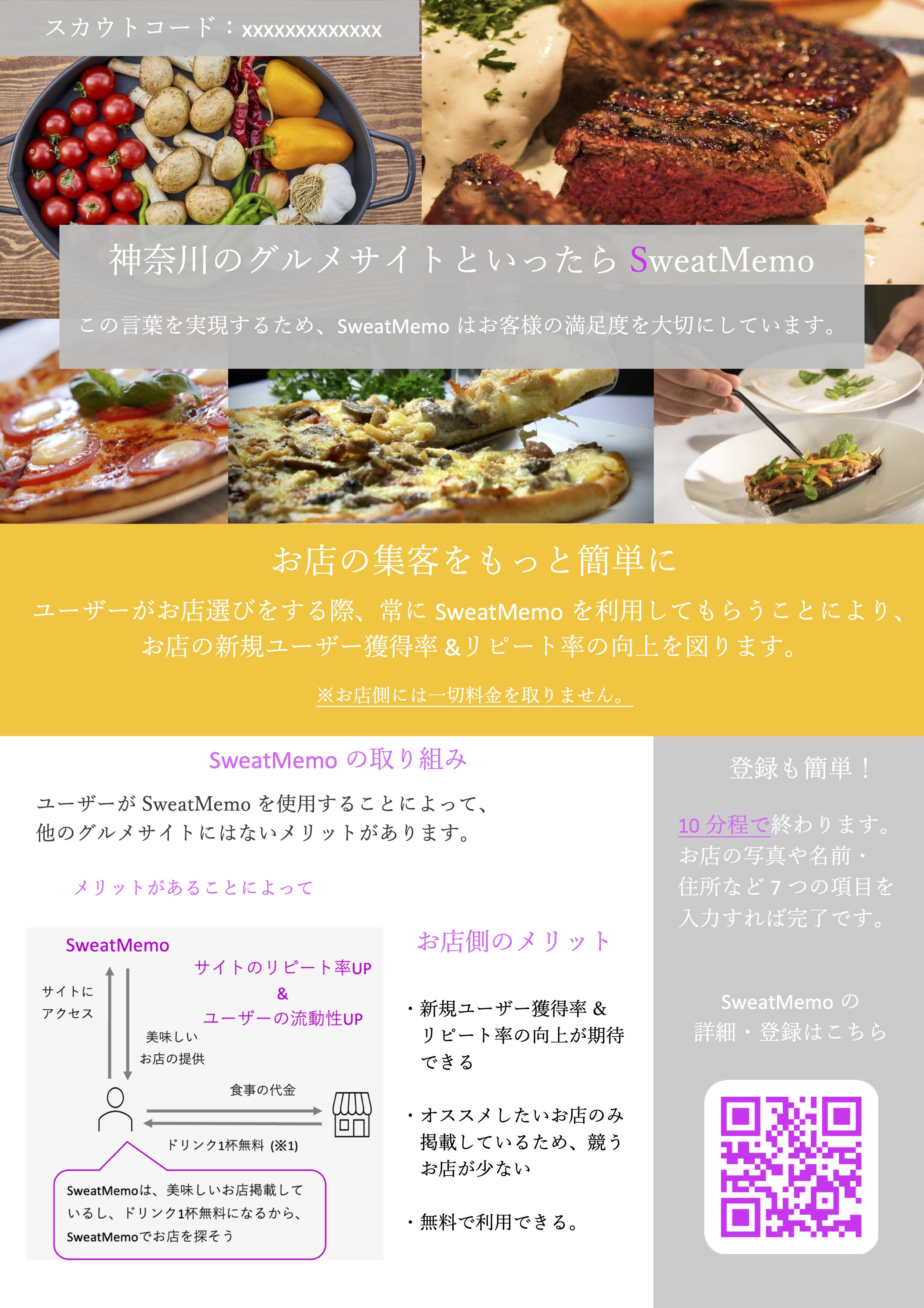 現在は、お店に食べに行き「SweatMemoに掲載していただきたい!」と思ったら、チラシを渡し登録していただけるように頼んでいます。