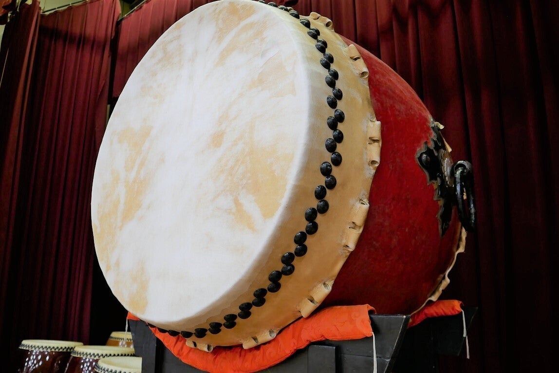 ご報告が遅くなり、申し訳ございません。大太鼓に新しい命が宿り、AIEに戻ってきました!今回大太鼓の皮の張り替えを担当いただいたのは、滋賀県で300年続く太鼓職人の18代目、太鼓屋六右衛門の杉本様です。<2月5日>オンライン中継で見学させていただいた工房見学では、皮の張替えの工程の他、張られる前の1頭分の牛の皮、豊臣秀吉に命じられて作られた伝説の和太鼓職人の作った太鼓(作られたのは天保でした)等々、部員たちは食い入るように見ていました。大太鼓は片面に牛1頭分の皮が必要です。命をいただいて和太鼓が打てることをあらためて実感しました。皮の裏側にはご支援いただいた皆様のお名前を書かせていただきました。圧力をかけて締めていきます。ミシミシと音がします。この棒は外れて当たると、打撲では済まないくらいの力がかかっているそうです。 オンライン中継中。皮の上に乗って踏み、伸ばします。この工程を繰り返し、大太鼓は完成です。<3月1日>待ちに待った大太鼓が帰って来ました。大太鼓、帰還です!打ち初めの儀式。一人一打ずつ、打っていきました。なんと、六右衛門様からサプライズに太鼓のプレゼントをいただきました!六右衛門様、ありがとうございました。演奏会まであと3日。頑張ります!