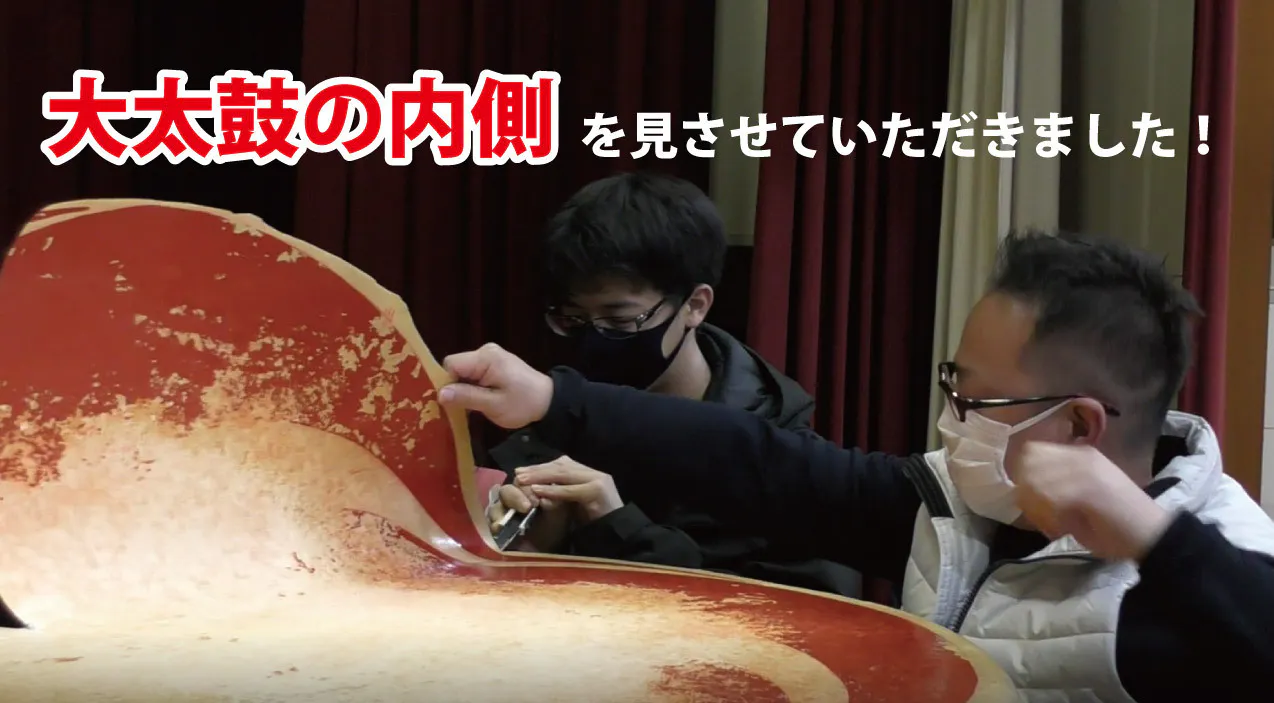 大太鼓が運ばれていく日。一生のうちでも滅多にない機会だからと、太鼓の内側を見せてくださいました。