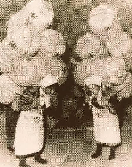 昔の女性は玄米を食べていたので米俵(60kg/袋)で5袋(300㎏)を軽々とかついでいたそうです。