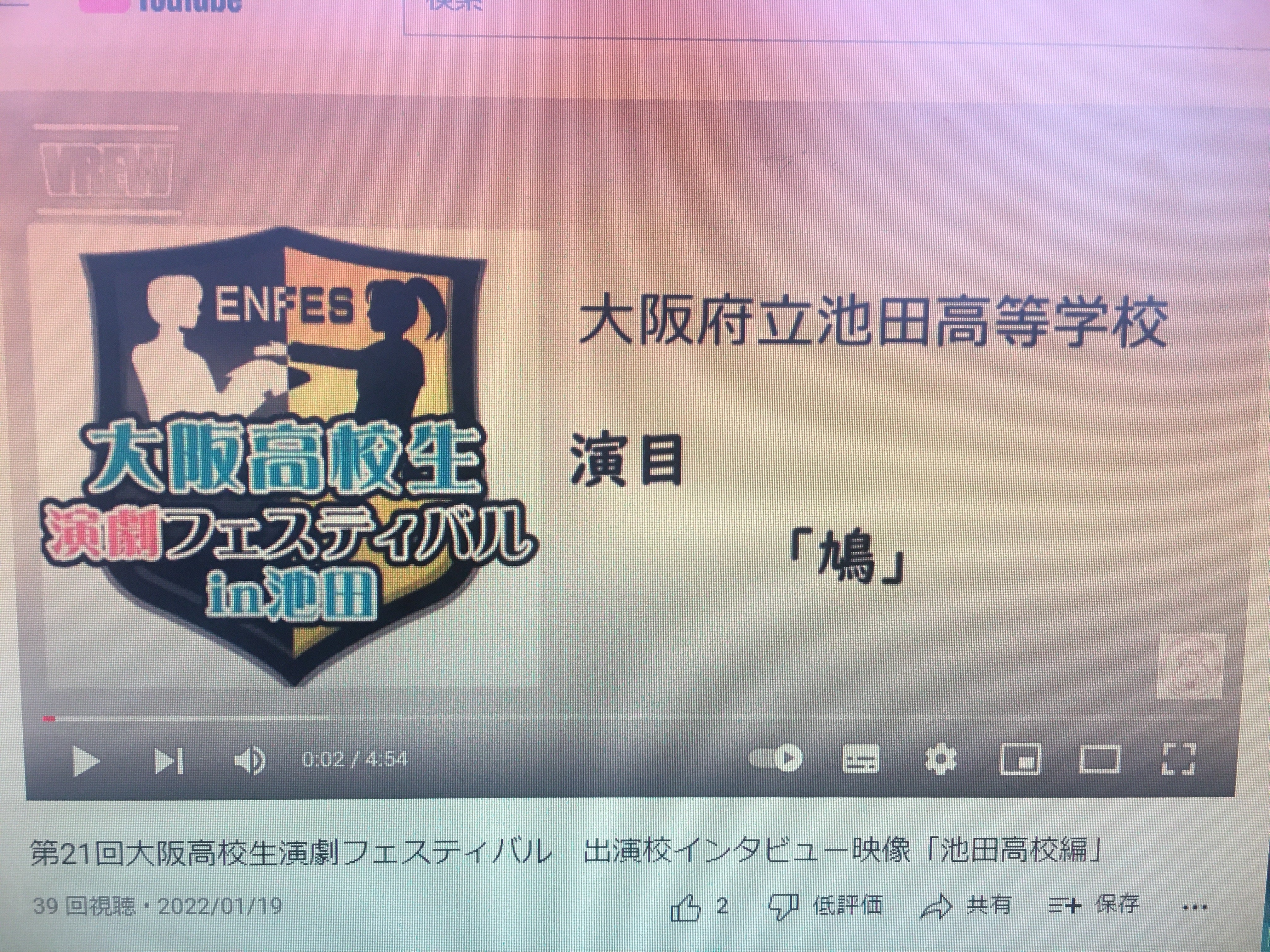 上演校演劇部員の皆さんにインタビューした動画の編集が進み、いよいよ第1校目が公開。まずは、箕面高校演劇部です。箕面高校演劇部 インタビュー上演作品について、作品の見所、演出などで苦労したところなどに答えてもらいました。「来場者の皆さんへ一言」もあります。視聴してから鑑賞すると、見ごたえUP間違いなし。どうぞ本インタビューも、ご視聴ください。クラウドファンドもまだまだ応援募集中!情報拡散、よろしくお願いいたします。ーーーーー未成年の高校生が、自分たちの力だけでは決してなし得ない、本物の文化ホールの舞台で上演する。上演の機会を【#大人の力を集結】して実現させます!それが、#第21回大阪高校生演劇フェスティバル の #クラウドファンド #キャンプファイヤー です。昨年度、上演した高校生の声を紹介します。「コロナ禍の中、貴重な舞台の場をいただけて良かったです。コンクールでは制限されることも多い中するのとは違い、やりたいことやできることが多い演フェスは、演劇をすごく楽しむことができるので勉強にもなるし参加してよかったです。」貴方の応援もお待ちしています。演フェスへのご寄付は、こちらから。https://camp-fire.jp/projects/view/528039?list=dance_popular