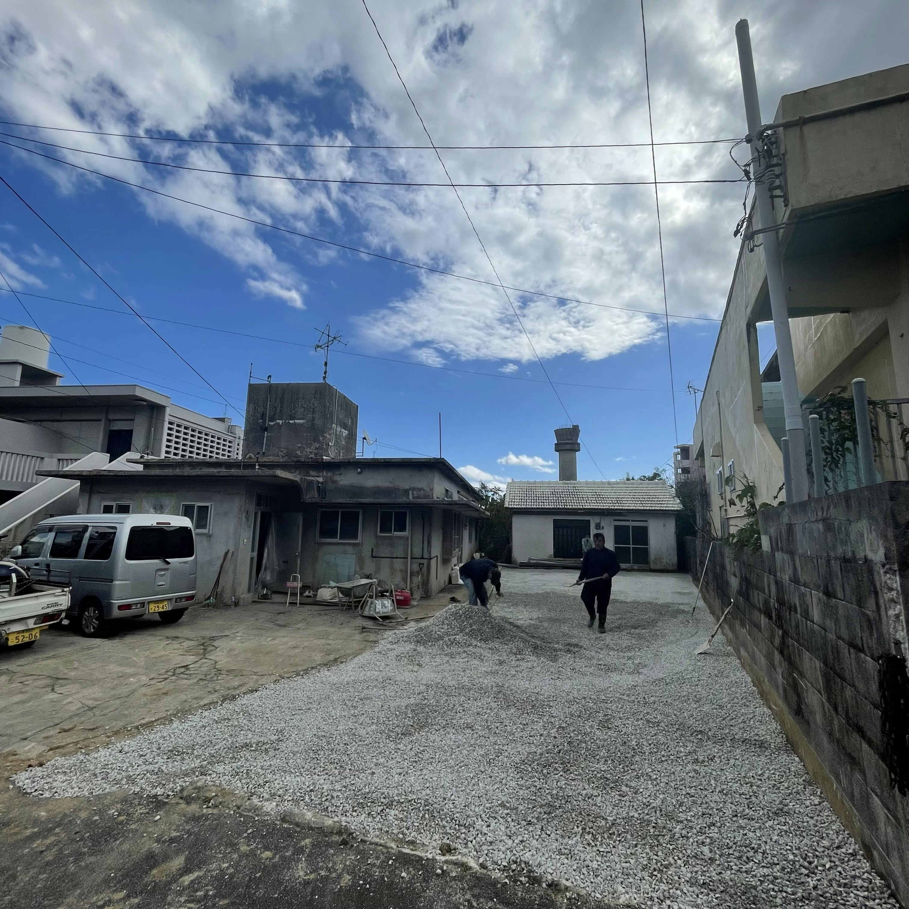 皆んなのお車を停める駐車場に砂利が、敷かれて駐車場らしくなっております。