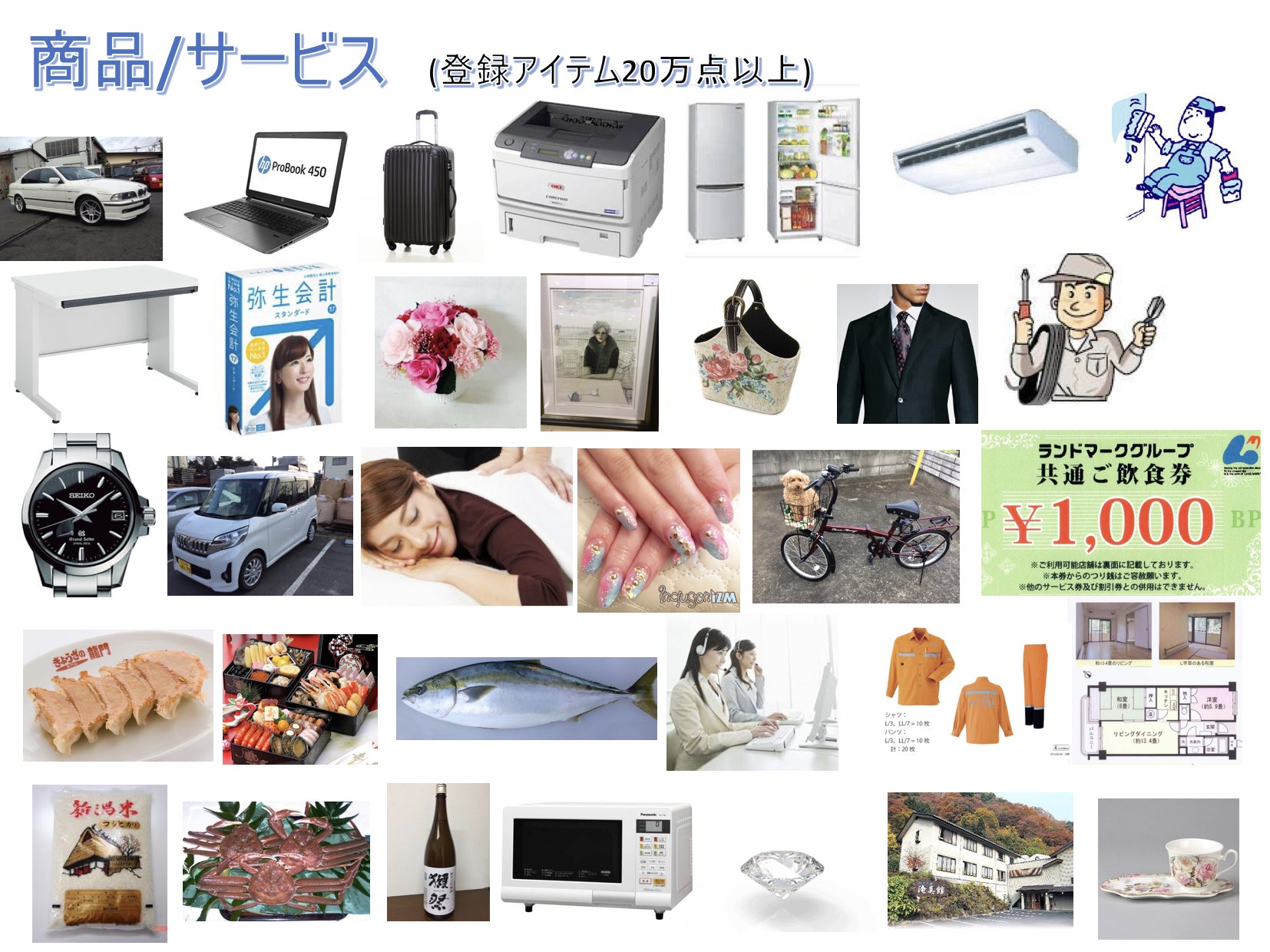 バータージャパンに登録されている商品・サービスは、なんと20万点以上もあります。