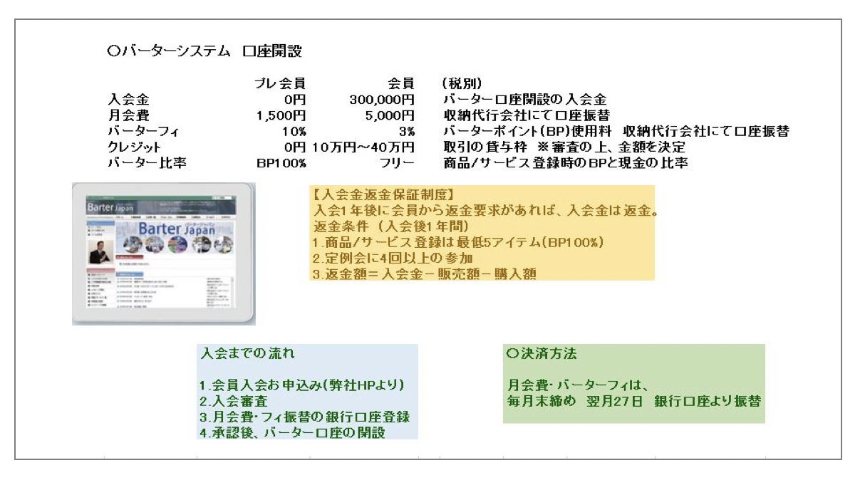 正会員は入会金が30万円ですが、その分バーター取引時にかかる手数料が安くなっています。一定以上の取引をするなら、正会員がお得です。しかし、「まずは入って取引を体験してみたい」という方は、プレ会員で気軽にお試しいただくことがおすすめです。