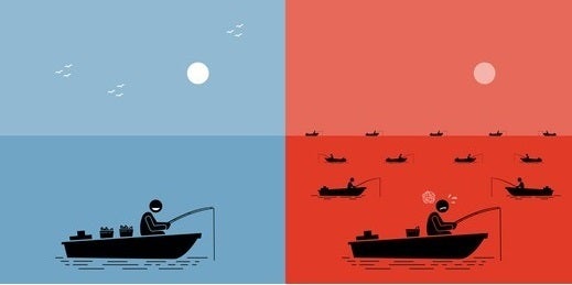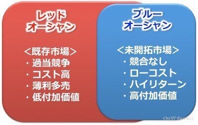 競争の激しい既存市場を「レッド・オーシャン(赤い海、血で血を洗う競争の激しい領域)」とし、競争のない未開拓市場である「ブルー・オーシャン(青い海、競合相手のいない領域)」を切り開くべきか。