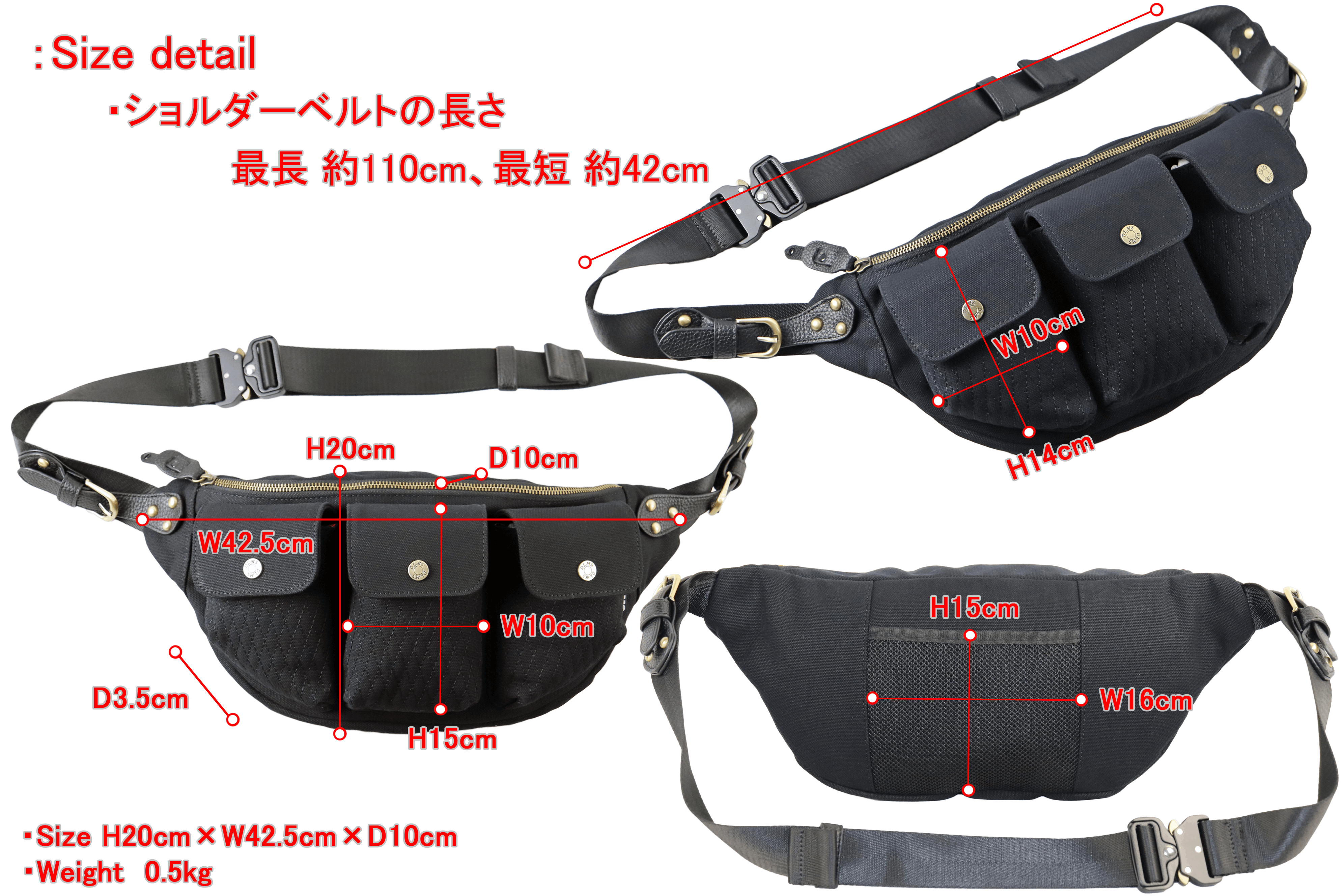 ・Size:H20cm×W42.5cm×D10cm(Dは上部ポケット口を計測)