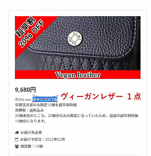 【文頭から申し訳ございません。活動報告欄に訂正分を記載させていただく事大変申し訳ございません。表題の写真のキャンバスは誤りになります。ヴィーガンレザーが正しいですので、御検討宜しくお願い申し上げます。】