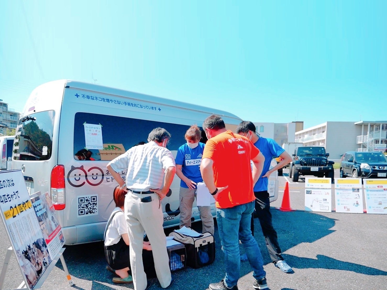 今回、二回目となる手術車両を会場に設置しての「びわ湖ハッピーにゃんずプロジェクト」兼ねてより会場にて皆様から頂いた募金を野良猫地域社会課題に挑んで下さる方々への手術費用助成として使用させていただきました。誠にありがとうごさいます。5頭のにゃんずにも新たなご縁が生まれ、手術には13頭が各地域から持ち込まれ、元地域で新たな猫生を楽しんでいってくれる運びとなりました!にじのはしスペイクリニック多賀診療所スタッフ&高橋院長のご尽力に感謝!!翌日の多賀診療所と合わせて今回は23頭のハッピーにゃんずの誕生です!スタート以来、滋賀県北部を中心に581頭のにゃんずに施術を出来た事は間違いなくその先に福祉を担保されない環境に生まれる可能性がある多くの子猫たちやまちでのトラブルの軽減に繋がっているのです。