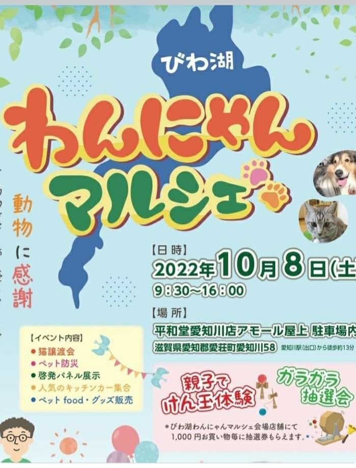 皆様こんにちは。遂に来週は「びわ湖わんにゃんマルシェ」今シーズン最終回!沢山の関係者の皆様と共にお陰様をもちまして今シーズンもフィナーレを迎えられる事に誠に感謝いたします。誠にありがとうございます。この「びわ湖ハッピーにゃんずプロジェクト」クラウドファンディングでの返礼品としとお渡ししているマルシェ商品券ですが使用期限が来週のマルシェの日程である11月20日となっております。折角なので是非、当日ご来場頂きご使用頂きますようにお願いいたします。昨日は、TNRをした後の猫達のお見守りと環境チェックを兼ねての彦根城周辺のクリーンアップ作戦が行われました。また資料が整い次第ご報告しますが、滋賀県の猫を取り巻く環境は少しずつ確実に進歩し始めたと思っています。活動が多様な立場の方々に見えるようになり理解者が増えてきているのは確かです。二年前にはスペイクリニックの存在すら無かった土地に数字として変化が現れてきているのです。びわ湖周辺にお住まいの方々は良くご存知だと思いますが、びわ湖を守る為に約40年前に興った無リン洗剤運動。今では当たり前ですからね。ありがたい事に同じ様に未来に向け地域社会全体が少しずつ動いているのを感じています。当たり前に人が穏やかに猫が幸せに暮らせるまちに向けて。クリーンアップ作戦にご参加下さった皆様、誠にありがとうごさいました。Facebook記事ですがシェアさせて頂きますのでご覧くださいませ。藤井https://m.facebook.com/story.php?story_fbid=pfbid0BKX849byWL8K3B9qpXQQtkqgGaQmZ69YNdtos4poAyZC5b4jtLsg8wMsTudwwWLsl&id=100066609645362