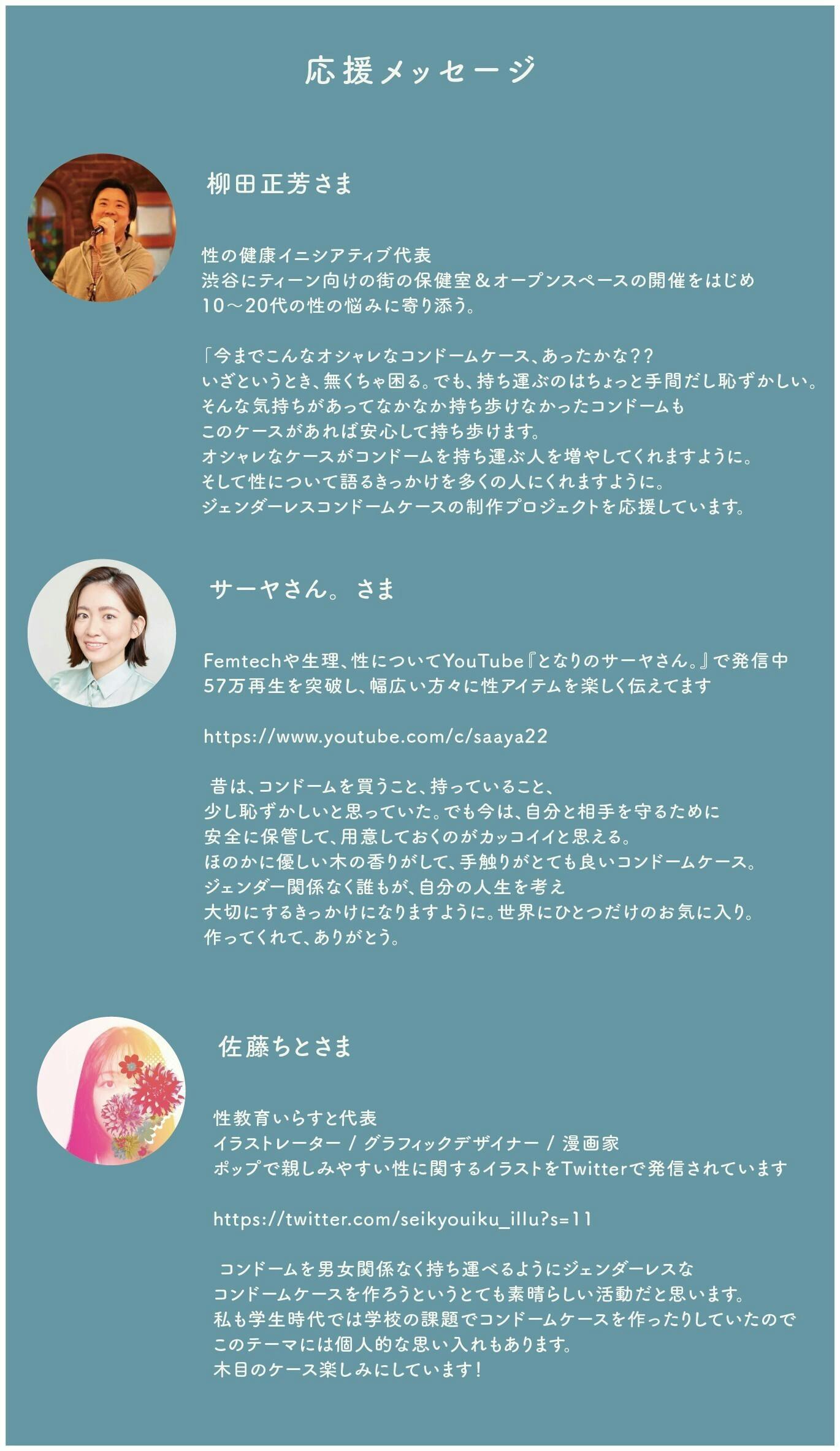 このプロジェクト公開にあたり、多くの方から応援メッセージをいただいていますので、ご紹介させていただきます。(画像をご覧ください)