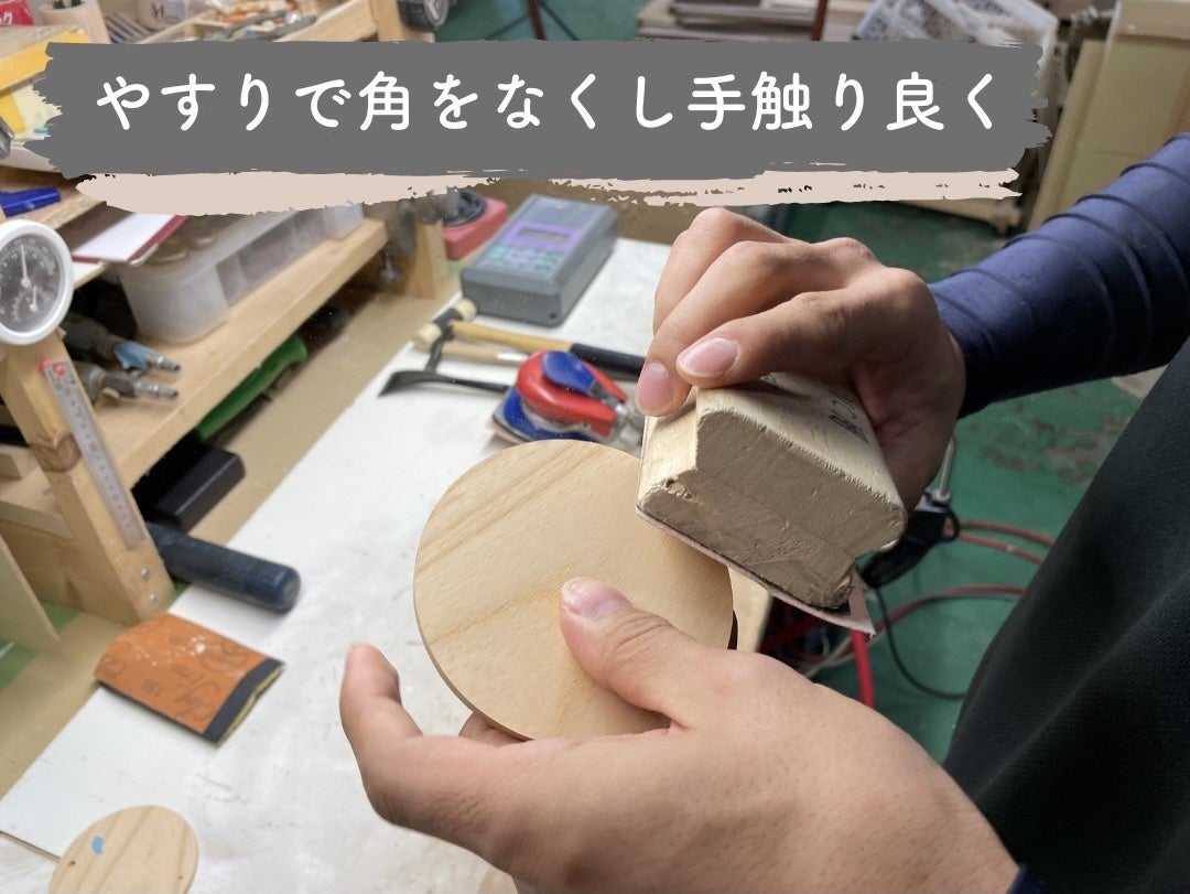 職人さんの手で、一つ一つ丁寧に木を削っていき、ケースの角・面を取っています。