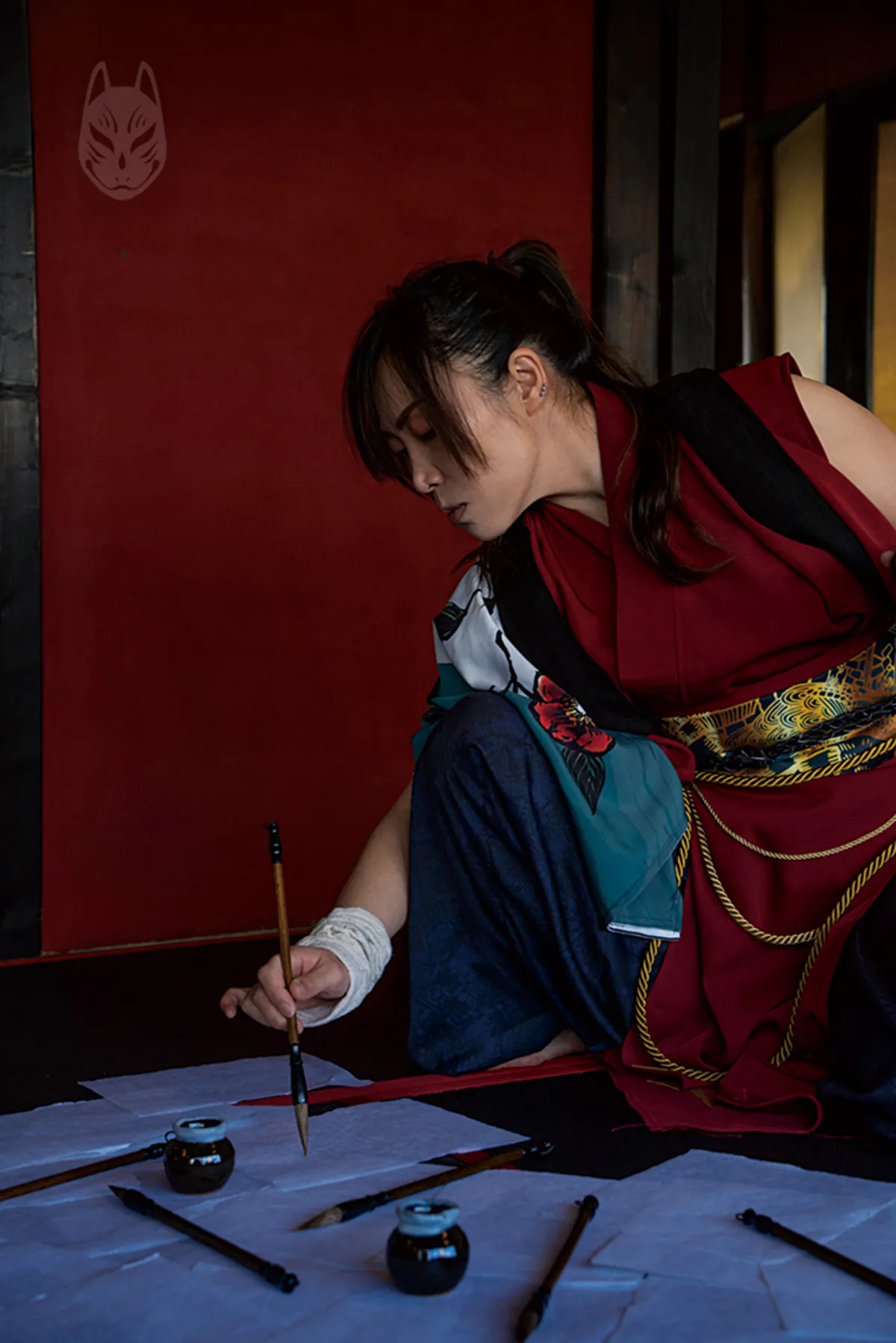 公演前に京都の会場にて狐面の展示会を開催します。その展示会に出品されたお面を盛岡へ運び、会場のお席へ配置します。また、別途盛岡で作成したお面も仲間入りします。