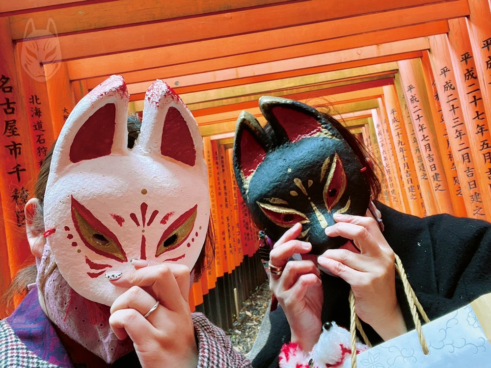 公演前に京都の会場にて狐面の展示会を開催します。その展示会に出品されたお面を盛岡へ運び、会場のお席へ配置します。また、別途盛岡で作成したお面も仲間入りします。
