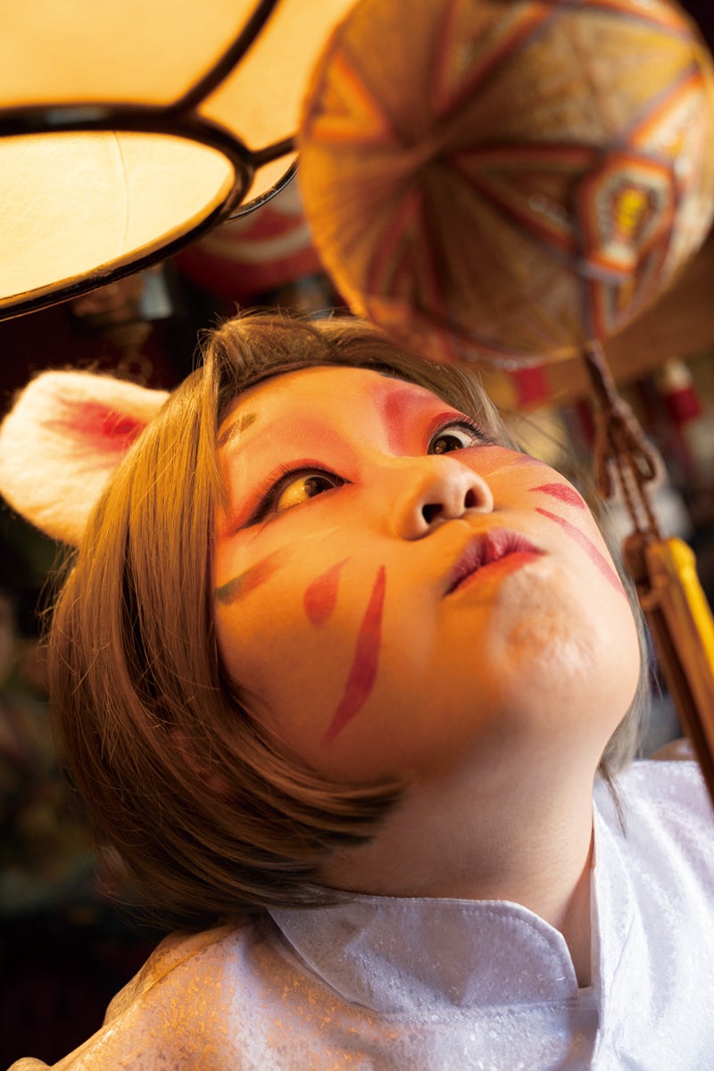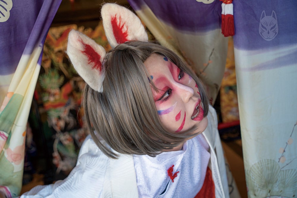 すべての客席に、狐面が配置されています。お客様はお選びいただいたお席にあるお面を着け、お稲荷さんの眷属となって、お芝居をお楽しみください。配信のカメラも入りますので、お面はプライバシーの保護にも適宜ご活用ください。お顔につけていただかずとも、頭や首元などでも結構です。後ろのお客様のご迷惑にならないようご配慮ください。