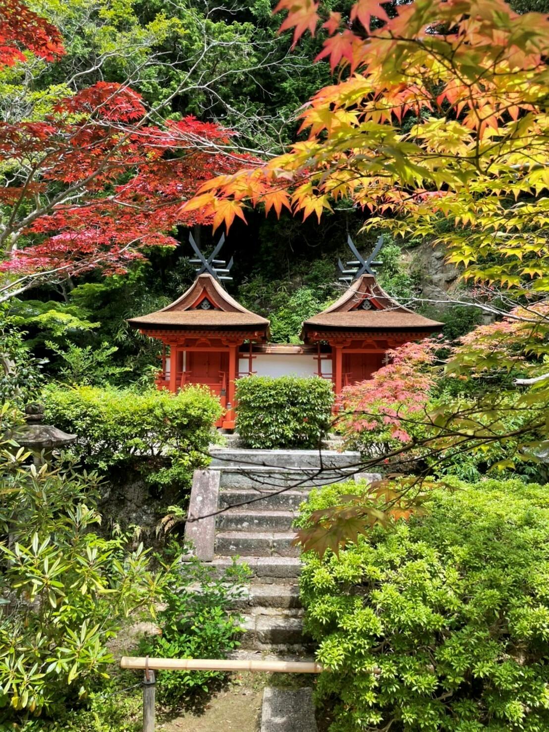 円成寺境内に建つ国宝の鎮守社 春日堂・白山堂は令和3年度事業として修復を終え、屋根を葺き直し、きれいな姿となっています。