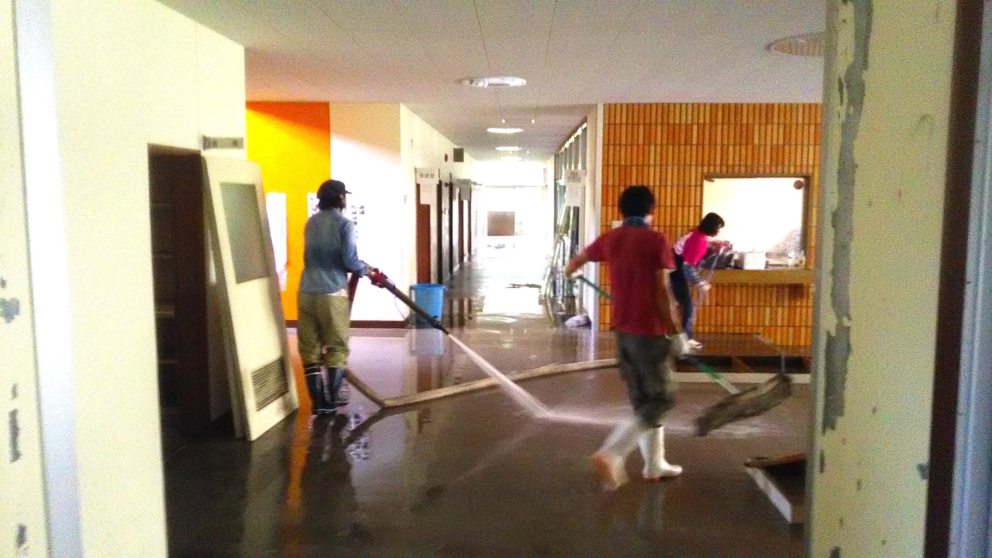 今から約2年前、2019年9月下旬に台風の影響で、旧佐護小学校近くの佐護川が氾濫し、近隣の約40世帯と同時に、校舎は床上浸水しました。その後、有志で声をかけ合って集まり、校舎1階の泥出し作業を行いました。佐護の地域や、かつての学び舎に想いを持つ人たちでの共同作業でした。