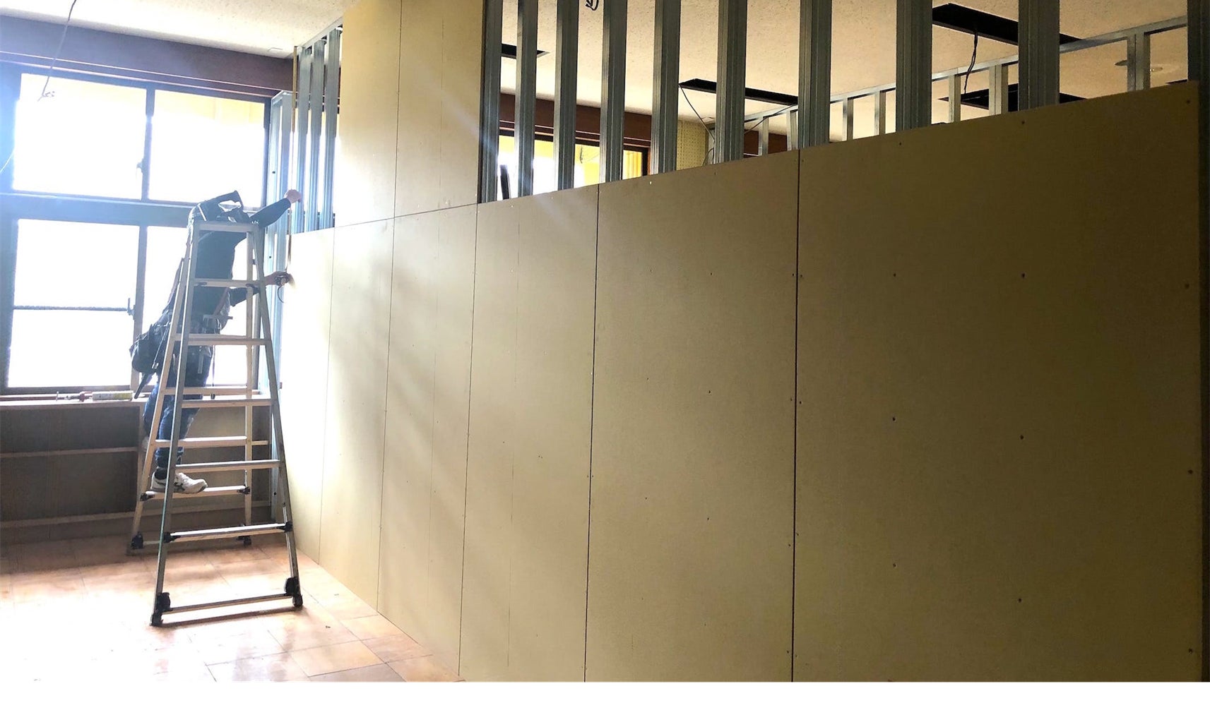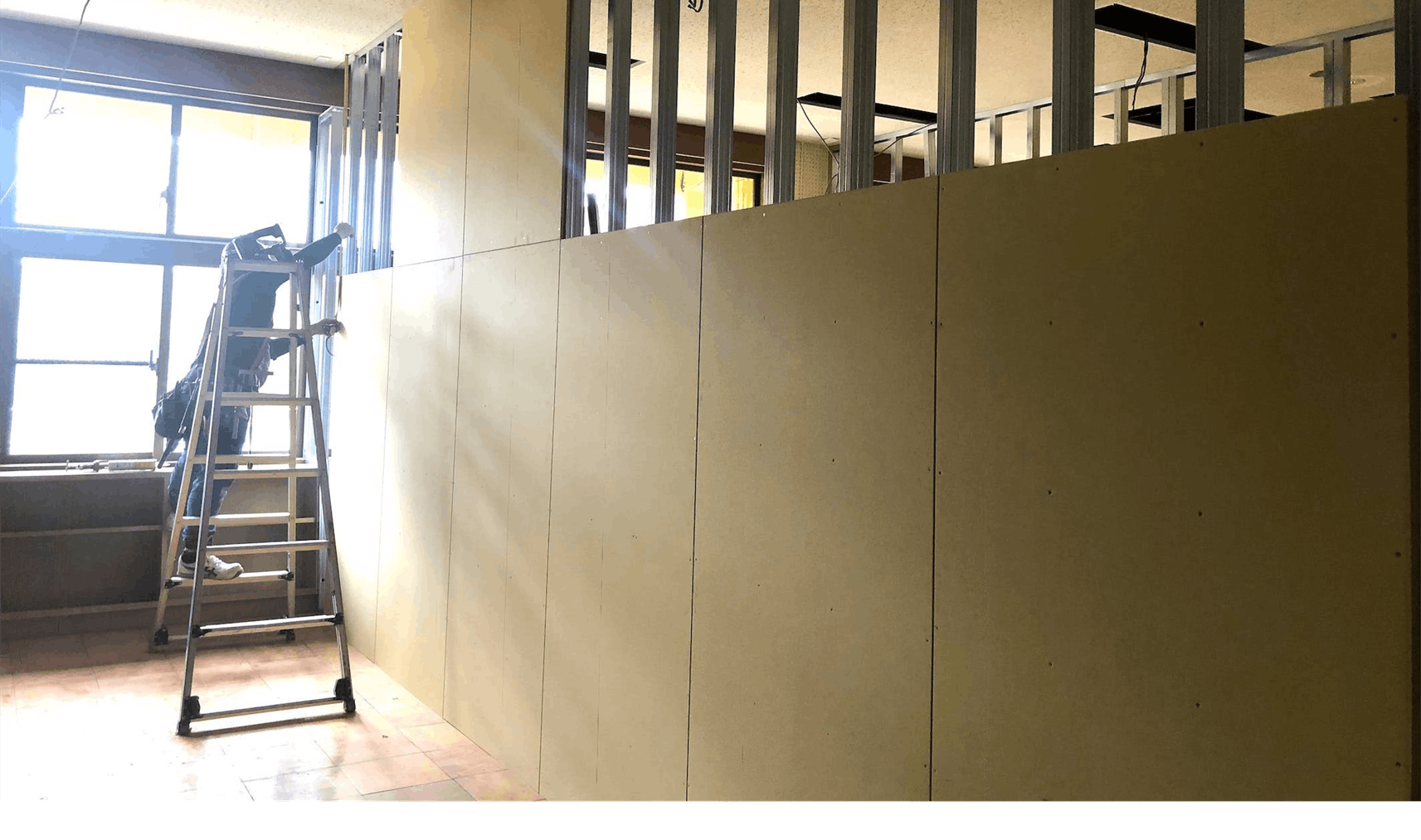 校舎1階は、万が一の浸水の可能性に備え、交流スペース等としての活用に留めており、メインとなる活用は全て、校舎2階にて展開しております。昨年度の第1期改修工事(主に食堂・厨房等の整備)に続き、現在は、宿泊施設(ゲストハウス)の整備のため、第2期改修工事を行っています。