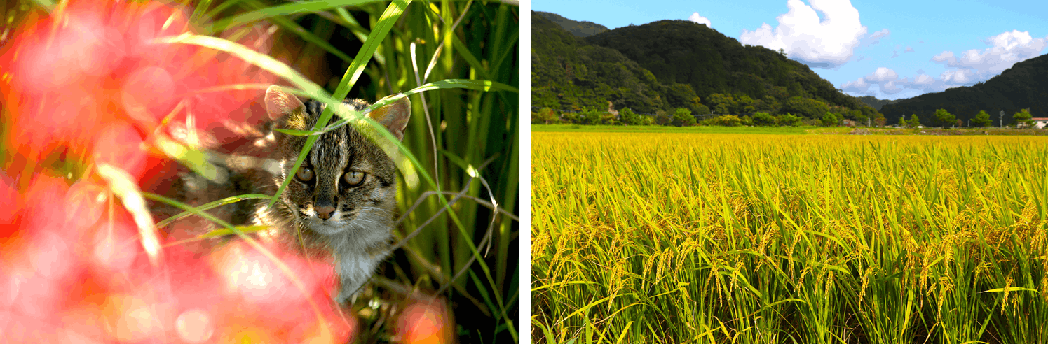 その対馬の北部に位置し、約50km先に韓国・釜山を眺められる、日本最北西端の人口約600人の農山漁村が、佐護(さご)地域です。自然豊かで、天然記念物・ツシマヤマネコの最大生息地であり、渡り鳥の飛来地でもあります。森・川・里・海の全てがあり、佐護平野は対馬の貴重な米どころ。遺跡や文化財も多く、昔から日本と大陸の架け橋としての役割を果たしてきた郷でもあります。景勝地・千俵蒔山からの景色は圧巻。美味しい郷土料理も味わえます。