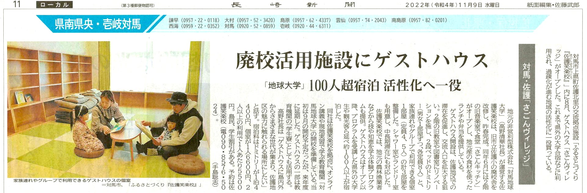 \ 長崎新聞にご掲載いただきました!「さごんヴィレッジ」/