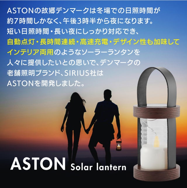 ASTONは自動で点灯&消灯でき、北欧デザインでおしゃれなソーラーランタンです!