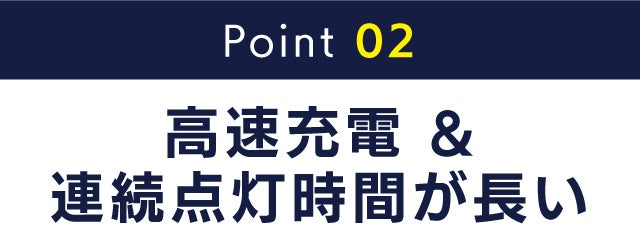 充電速度が速く、連続点灯時間も長い。