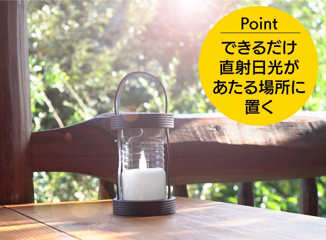 まずは、直射日光があたる場所に置き、充電してください。